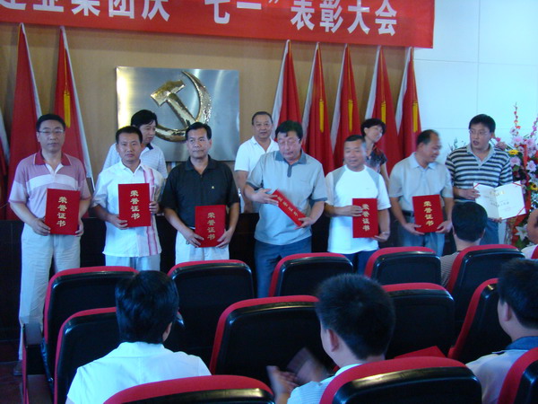 为迎接建党八十八周年, 2009年6月29日上午,集团公司党委在六楼大会议室举行了隆重的庆“七一”表彰大会,对在过去的一年中,集团公司各方面工作中涌现出来的先进党支部、优秀共产党员、优秀党务工作者进行了表彰。