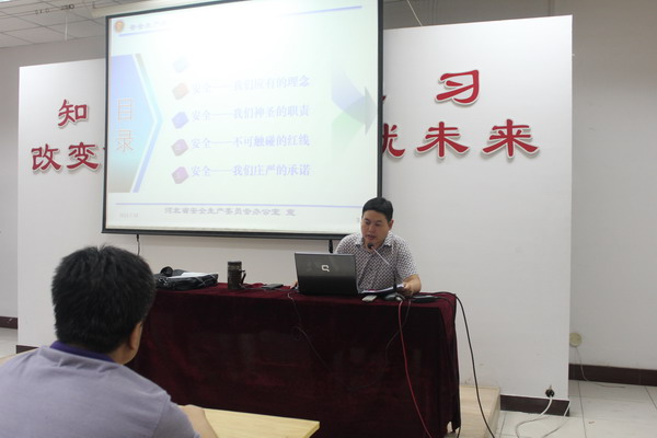 2014年7月18日,集团公司安全部组织,在培训中心电教室,组织了安全生产尽职尽责警示教育。这次宣讲活动,是河北省安全生产履职尽责警示教育活动的一部分,河北省安全生产履职尽责警示教育活动是经河北省政府领导同意、河北省安全生产委员会组织开展的。利用安全生产月的时间,对全省11.6万生产经营单位的主要负责人进行一次“安全生产履职尽责警示教育”。目的在于让大家进一步了解全国全省安全生产形势,明确自己身上所负的重任,强化红线意识,促进安全发展。